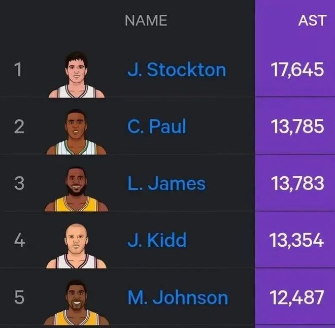 眼瞅著,老頭在NBA歷史助攻榜上的排名