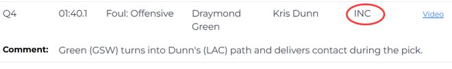 第一次漏判發(fā)生在距離比賽結束還有1分40秒,勇士隊的格林在掩護時切入快船隊鄧恩的行進路線,并發(fā)生了身體接觸。庫里借此機會投中了一記三分球。這是一次漏吹的進攻犯規(guī),勇士獲利,快船吃虧。