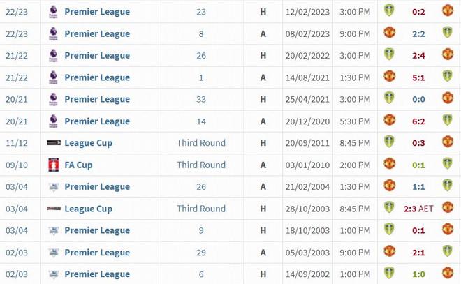 據(jù)統(tǒng)計,曼聯(lián)近9次在聯(lián)賽對陣利茲聯(lián)無一敗績,取得6勝3平。上次曼聯(lián)聯(lián)賽不敵利茲聯(lián)還要追溯至23年前:2002/03賽季英超聯(lián)賽第6輪,利茲聯(lián)在主場1-0小勝。